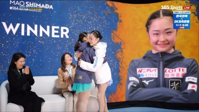 ‘파이널 4연패’ 시마다 마오를 축하하는 김유성 [그랑프리 파이널 주니어 여자 프리]