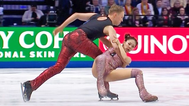 아찔! 서로를 믿고 버틴 유카 오리하라-유호 피리넨 [세계선수권 아이스댄스 리듬댄스]